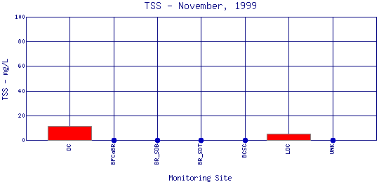 The above map indicates water quality monitoring sites. To view data at a specific site select it from the map with the mouse.