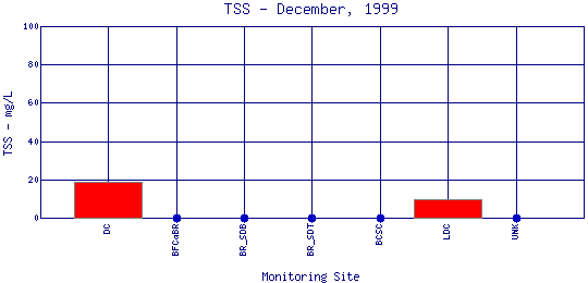 The above map indicates water quality monitoring sites. To view data at a specific site select it from the map with the mouse.
