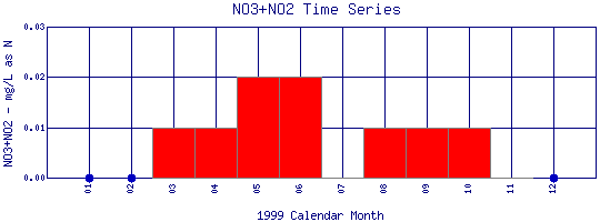 Nitrate + Nitrite Time Series for 1999 Boulder Reservoir South Dam - Bottom |