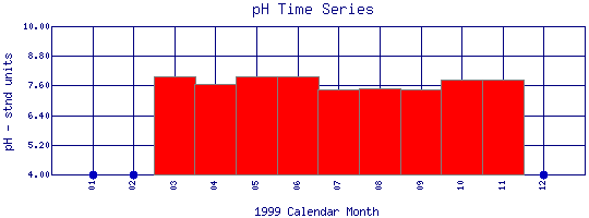 pH Time Series for 1999 Boulder Reservoir South Dam - Bottom |