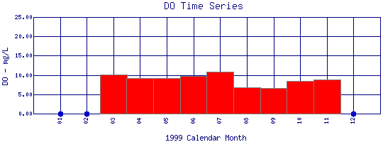 Dissolved Oxygen Time Series for 1999 Boulder Reservoir South Dam - Top |