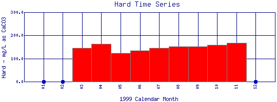 Total Hardness Time Series for 1999 Boulder Reservoir South Dam - Top |