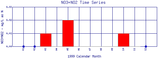 Nitrate + Nitrite Time Series for 1999 Boulder Reservoir South Dam - Top |