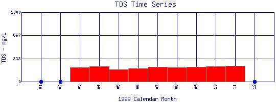 Total Dissolved Solids Time Series for 1999 Boulder Reservoir South Dam - Top |