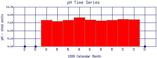 pH Time Series for 1999 Boulder Reservoir South Dam - Top |