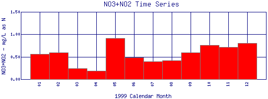 Nitrate + Nitrite Time Series for 1999 Dry Creek |