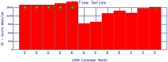 Specific Conductance Time Series for 1999 Dry Creek |