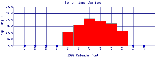 Water Temperature Time Series for 1999 Unknown Ditch |