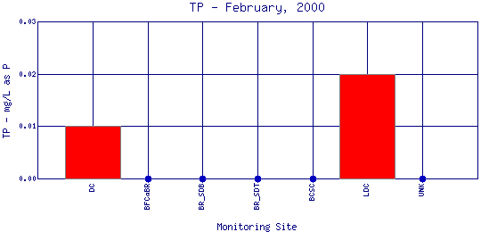 The above map indicates water quality monitoring sites. To view data at a specific site select it from the map with the mouse.