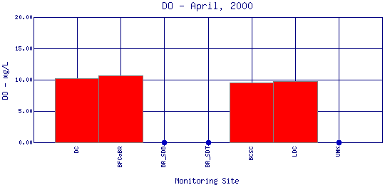 Dissolved Oxygen (DO) is the amount of oxygen dissolved in the water. DO is a very important indicator of a water body's ability to support aquatic life. The amount of DO in water depends on several factors, including temperature (the colder the water, the more oxygen can be dissolved); the volume and velocity of water flowing in the water body; and the amount of organisms using oxygen for respiration. The amount of oxygen dissolved in water is expressed as a concentration, in milligrams per liter (mg/l) of water. The optimal DO for adult brown trout is 9-12 mg/l. Human activities that affect DO levels include the removal of riparian vegetation, runoff from roads, and sewage discharge.