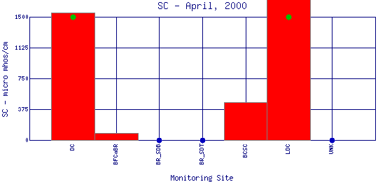 Specific Conductance is a measure of how well water can pass an electrical current. It is an indirect measure of the presence of inorganic dissolved solids, such as chloride, nitrate, sulfate, phosphate, sodium, magnesium, calcium, and iron. These substances conduct electricity because they are negatively or positively charged when dissolved in water. The concentration of dissolved solids, or the conductivity, is affected by the bedrock and soil in the watershed. It is also affected by human influences. For example, agricultural runoff can raise conductivity because of the presence of phosphate and nitrate.