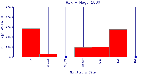 Alkalinity refers to how well a water body can neutralize acids. Alkalinity measures the amount of alkaline compounds in water, such as carbonates (CO3 2-), bicarbonates (HCO3 -), and hydroxides (OH-). These compounds are natural buffers that can remove excess hydrogen ions that have been added from sources such as acid rain or acid mine drainage. Alkalinity mitigates or relieves metals toxicity by using available HCO3 - and CO3 2- to take metals out of solution, thus making it unavailable to fish. Alkalinity is affected by the geology of the watershed; watersheds containing limestone will have a higher alkalinity than watersheds where granite is predominant. The Boulder Creek Watershed is composed primarily of granite rocks, thus the water has a lower alkalinity content.
