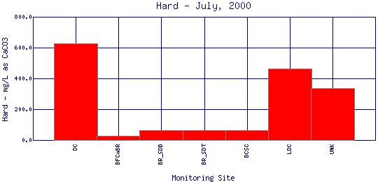 Hardness generally refers to the amount of calcium and magnesium in water. In household use, these cations (ions with a charge greater than +1) can prevent soap from sudsing and leave behind a white scum in bathtubs. In the aquatic environment, calcium and magnesium help keep fish from absorbing metals, such as lead, arsenic, and cadmium, into their bloodstream through their gills. Therefore, the harder the water, the less easy it is for toxic metals to absorb onto gills. Water in the Boulder Creek watershed is generally soft because the water comes mainly from melting snow which is low in minerals and metals.