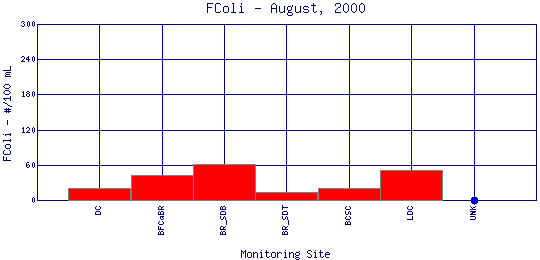 Fecal Coliform Bacteria is found in the intestinal tracts of mammals. High concentrations of the bacteria in water or sludge suggest the presence of disease-causing organisms, and may be caused by septic tank failure, poor pasture and animal keeping practices, pet waste, and urban runoff.