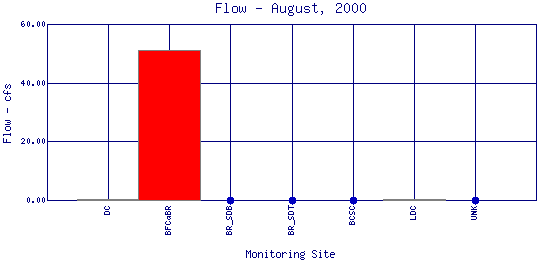 Flow is the volume of water moving past a point in a unit of time. Two things make up flow: the volume of water in the stream, and the velocity of the water moving past a given point. Flow affects the concentration of dissolved oxygen, natural substances, and pollutants in a water body. Flow is measured in units of cubic feet per second (cfs). Peak flows for Boulder Creek in the spring can reach as high as 300-800 cfs and as low as 10-50 cfs in the fall months.