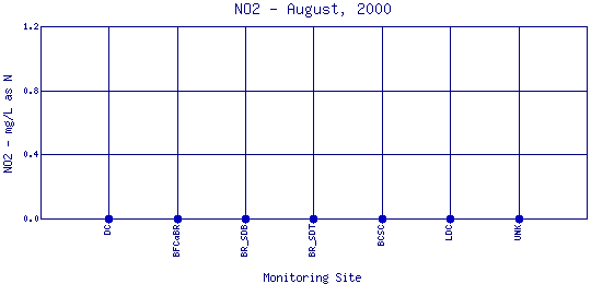 The above map indicates water quality monitoring sites. To view data at a specific site select it from the map with the mouse.