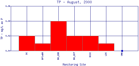 The above map indicates water quality monitoring sites. To view data at a specific site select it from the map with the mouse.