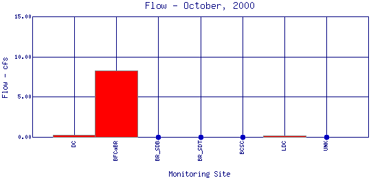 Flow is the volume of water moving past a point in a unit of time. Two things make up flow: the volume of water in the stream, and the velocity of the water moving past a given point. Flow affects the concentration of dissolved oxygen, natural substances, and pollutants in a water body. Flow is measured in units of cubic feet per second (cfs). Peak flows for Boulder Creek in the spring can reach as high as 300-800 cfs and as low as 10-50 cfs in the fall months.  | ||||||||||||||||||||||||||||||