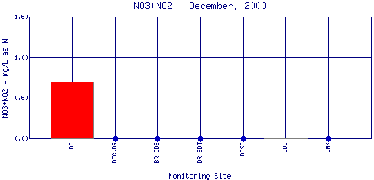 The above map indicates water quality monitoring sites. To view data at a specific site select it from the map with the mouse.