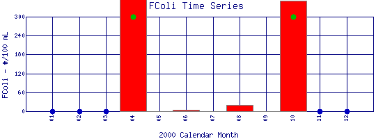 Select on the table date to view stream Fecal Coliform profiles observed on that date.
