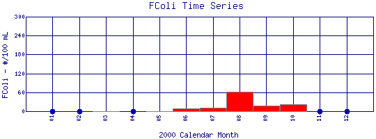 Fecal Coliform Time Series for 2000 Boulder Reservoir South Dam - Bottom |