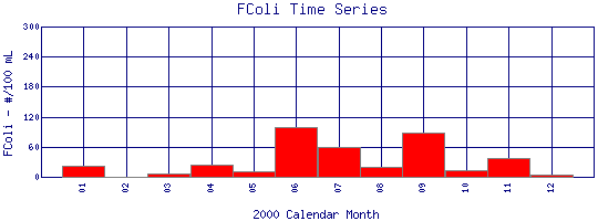 Fecal Coliform Time Series for 2000 Dry Creek |