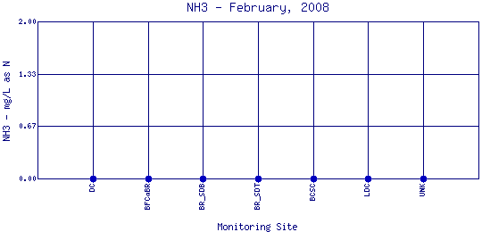The above map indicates water quality monitoring sites. To view data at a specific site select it from the map with the mouse.