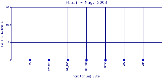 The above map indicates water quality monitoring sites. To view data at a specific site select it from the map with the mouse.