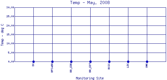The above map indicates water quality monitoring sites. To view data at a specific site select it from the map with the mouse.