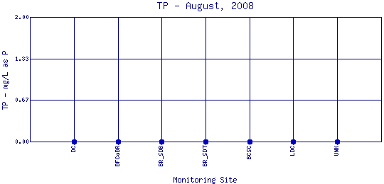 The above map indicates water quality monitoring sites. To view data at a specific site select it from the map with the mouse.
