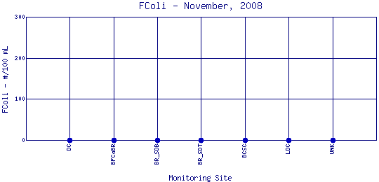 The above map indicates water quality monitoring sites. To view data at a specific site select it from the map with the mouse.