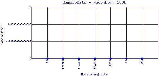 The above map indicates water quality monitoring sites. To view data at a specific site select it from the map with the mouse.