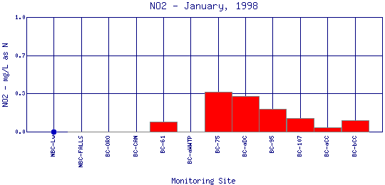 The above map indicates water quality monitoring sites. To view data at a specific site select it from the map with the mouse.