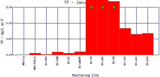 The above map indicates water quality monitoring sites. To view data at a specific site select it from the map with the mouse.