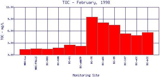 Longitudinal Total Organic Carbon Profiles for February, 1998