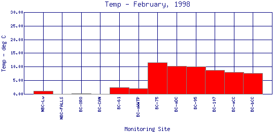Longitudinal Water Temperature Profiles for February, 1998