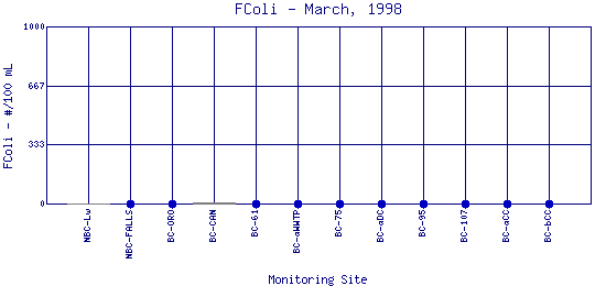 Longitudinal Fecal Coliform Profiles for March, 1998