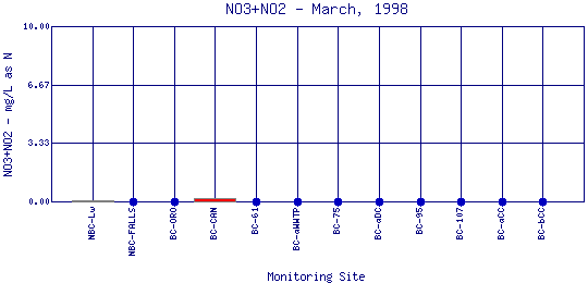 Longitudinal Nitrate + Nitrite Profiles for March, 1998