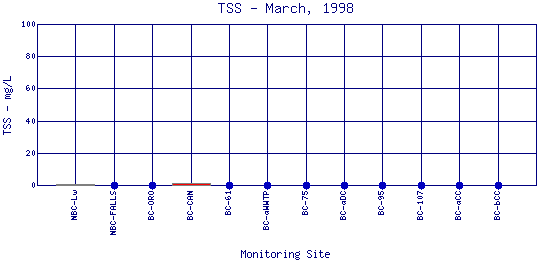 Longitudinal Total Suspended Solids Profiles for March, 1998