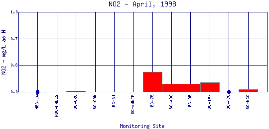 The above map indicates water quality monitoring sites. To view data at a specific site select it from the map with the mouse.