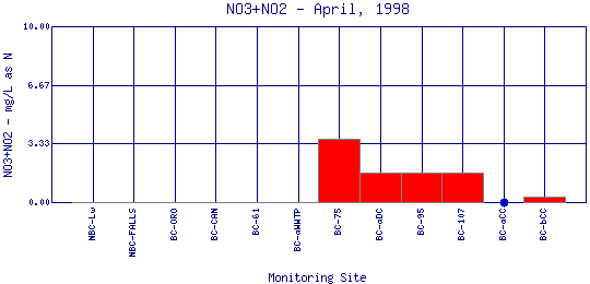 Longitudinal Nitrate + Nitrite Profiles for April, 1998