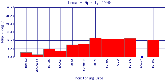 The above map indicates water quality monitoring sites. To view data at a specific site select it from the map with the mouse.