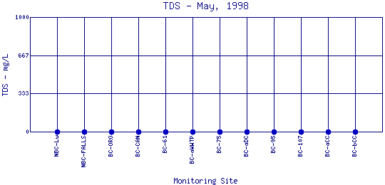 Longitudinal Total Dissolved Solids Profiles for May, 1998