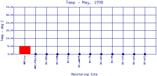 The above map indicates water quality monitoring sites. To view data at a specific site select it from the map with the mouse.