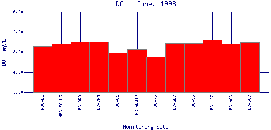 Longitudinal Dissolved Oxygen Profiles for June, 1998
