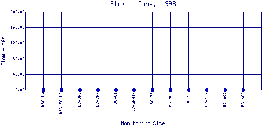 The above map indicates water quality monitoring sites. To view data at a specific site select it from the map with the mouse.