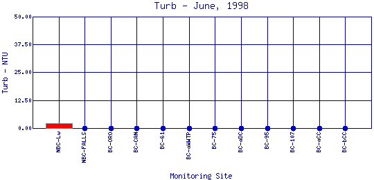 Turbidity is a measure of the cloudiness of the water. Cloudiness is caused by suspended solids or organic matter including silt, microorganisms, plant fibers, sawdust chemicals and coal dust. High levels of turbidity can block light from reaching submerged aquatic vegetation and can raise surface water temperatures because the suspended particles absorb heat from sunlight. The most frequent causes of turbidity are from logging, road and building construction, and mining activity. Turbidity affects fish by decreasing light penetration thus reducing the amount of photosynthesis taking place in the water. This reduces the amount of oxygen available to fish. Large amounts of suspended solids can also clog fish gills, and it affects their ability to see and catch foo
