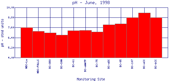 Longitudinal pH Profiles for June, 1998