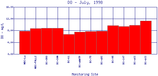 Longitudinal Dissolved Oxygen Profiles for July, 1998