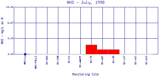 The above map indicates water quality monitoring sites. To view data at a specific site select it from the map with the mouse.